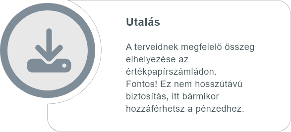A terveidnek megfelelő összeg elhelyezése az értékpapírszámládon. Fontos! Ez nem hosszútávú biztosítás, itt bármikor hozzáférhetsz a pénzedhez.